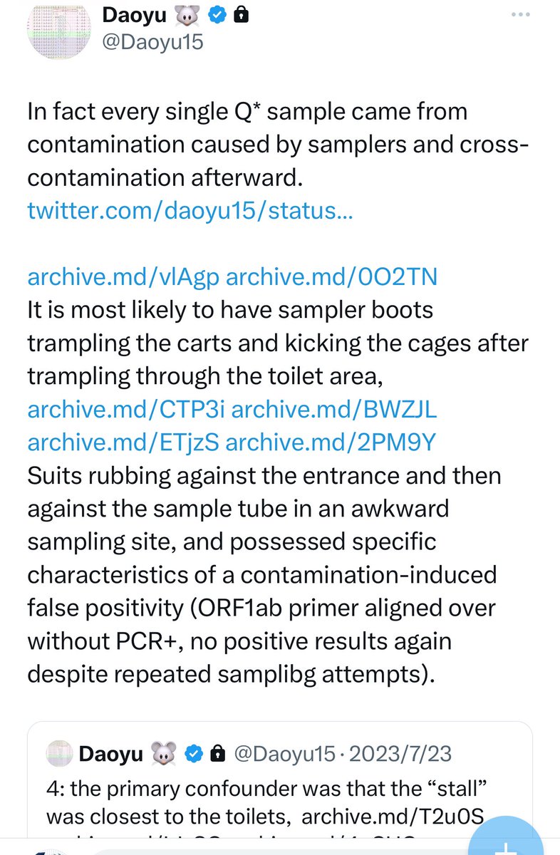 @Daoyu15 4/â¶ In fact every single Q* sample came from contamination caused by samplers and cross-contamination afterward. https://t.co/FLlRsmkvuF archive.md/vlAgp archive.md/0O2TN It is most likely to have sampler boots trampling the carts and kicking the @Daoyu15 https://t.co/XCtAoeBKzQ