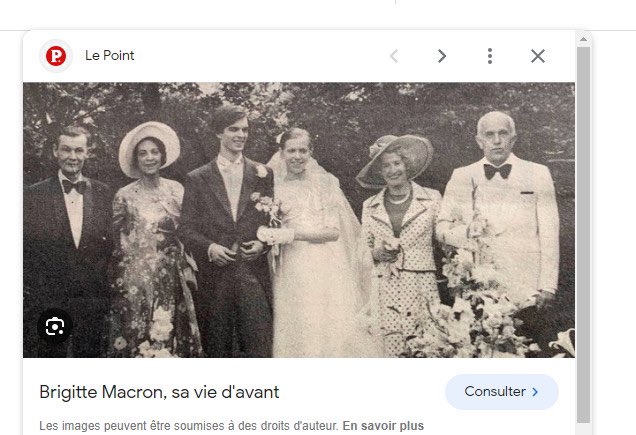 Question 3 : Quand a éclaté l’affaire, l’Elysée a démenti, tout en laissant dire que Jean-Michel Trogneux était un « petit gros ». Problème, quand on demande à la reconnaissance faciale si Jean-Michel Trogneux est le « petit gros », on obtient un résultat nettement inférieur (quelques -15 points) par rapport au score obtenu par « Brigitte ». Conclusion : « Brigitte » EST Jean-Michel Trogneux. Si vous doutez encore, entrez vos photos de famille dans l’IA chinoise et regardez les résultats obtenus !