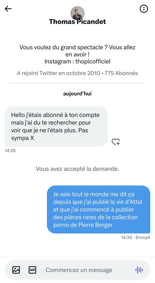 Si le pouvoir profond préfère sacrifier Zoé pour sauver le soldat Cauet, ce fut un plaisir de tous vous rencontrer ici. Ce fut 5 mois historiques (120 millions de lecteurs le mois dernier). Malheureusement, la France est un pays où des gens de pouvoir comme le sénateur polytoxicomane ou le président de l’Institut Montaigne, peuvent tranquillement droguer leurs collaboratrices pour tenter de les violer, où un ministre de la Justice en exercice est condamné à un an de prison, où des juges pour enfants proposent de vendre la virginité de leur fille de 12 ans, où les tapis à l’Elysée sont ceux de Claude Leveque qui est un « artiste contemporain », qui fait des sculptures avec les doudous des enfants qu’il viole. C’est aussi un pays où le président de la république défend une œuvre au Palais de Tokyo qui montre un enfant menotté et violé par un adulte disant que c’est « la défense de nos valeurs ». Dans cette logique, il est normal que le pays choisisse de tuer Zoé pour sauvegarder Cauet. J’ai une pensée émue pour toutes les victimes qui ont témoigné. Vous savez que j’ai fait mon maximum. En Angleterre ou aux Etats-Unis, vous auriez gagné, mais en France, c'est encore impossible. Le réseau est indéboulonnable, ils se tiennent tous par les couilles, et ce n’est pas le moment d’effondrer la pyramide. Même face à la police de Cauet, il va de soi que je protègerai mes sources. Ce qui va me coûter probablement ce compte. Mais dans la vie, même artificielle, il faut savoir conserver une éthique, une morale, sinon on peut vite se transformer en Cauet ou en Kassovitz. Merci encore pour tout. On se retrouvera d’une façon ou d’une autre. Et puis désormais, vous avez la chance d’avoir Cauet pour vous divertir vous et vos enfants jusqu’en 2027, donc tout va bien dans le meilleur des mondes. Vive la France, vive la République et vive Eric Dupont Morreti, les soirées au Touquet, l’article à venir du @nypost sur Brigitte et une pensées émues pour Xavier Bertrand et le patron de Décathlon.