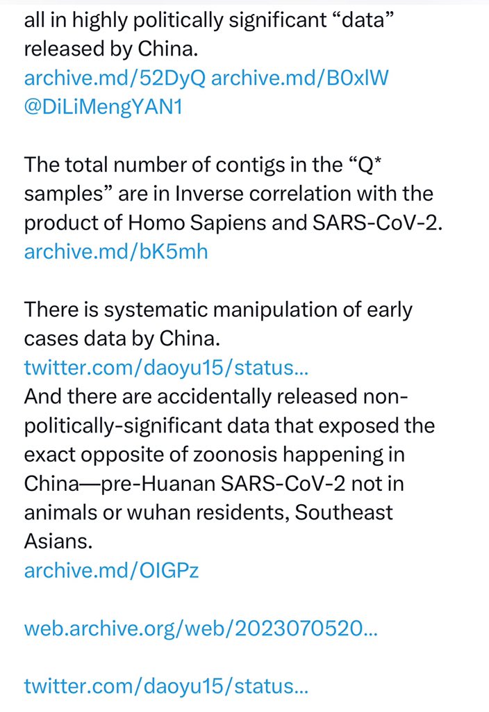 The GISAID archive.md/0aHWr archive.md/7XL5h neither do proper versioning or China maintain any custody of “data” they put up. Nor was GISAID itself.