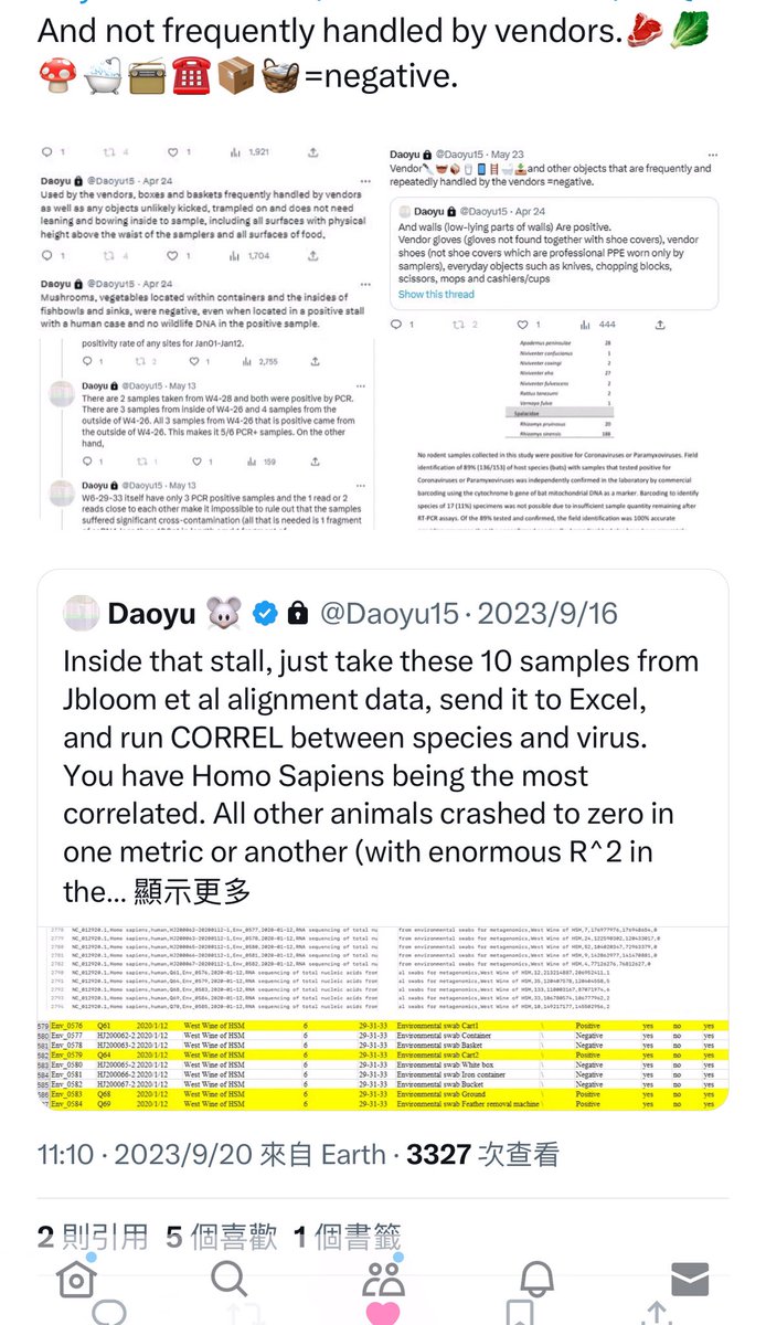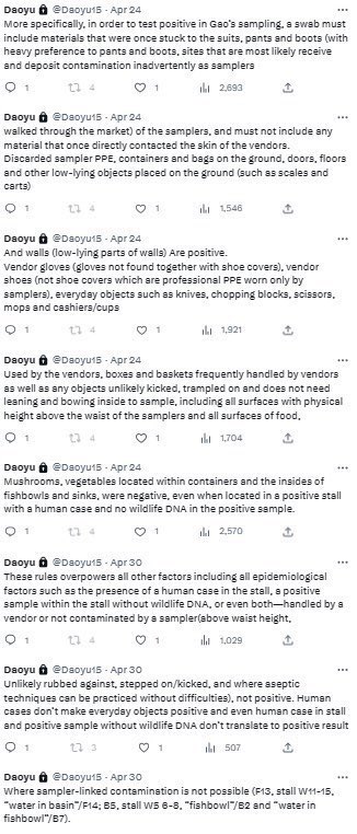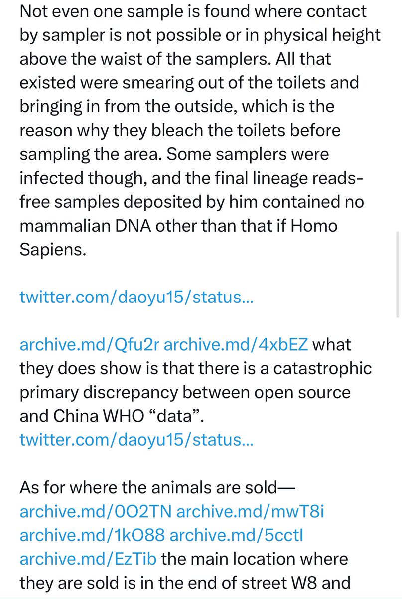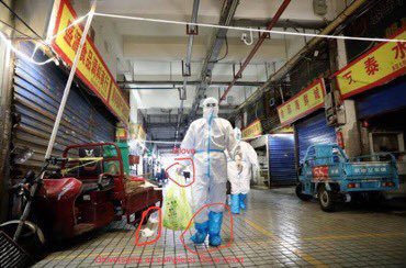 Sampler contamination and cross-contamination. archive.md/LJzSO archive.md/VNr75 Never an infected vendor or animal. In fact, the samples in the market follows the rule which a positive
