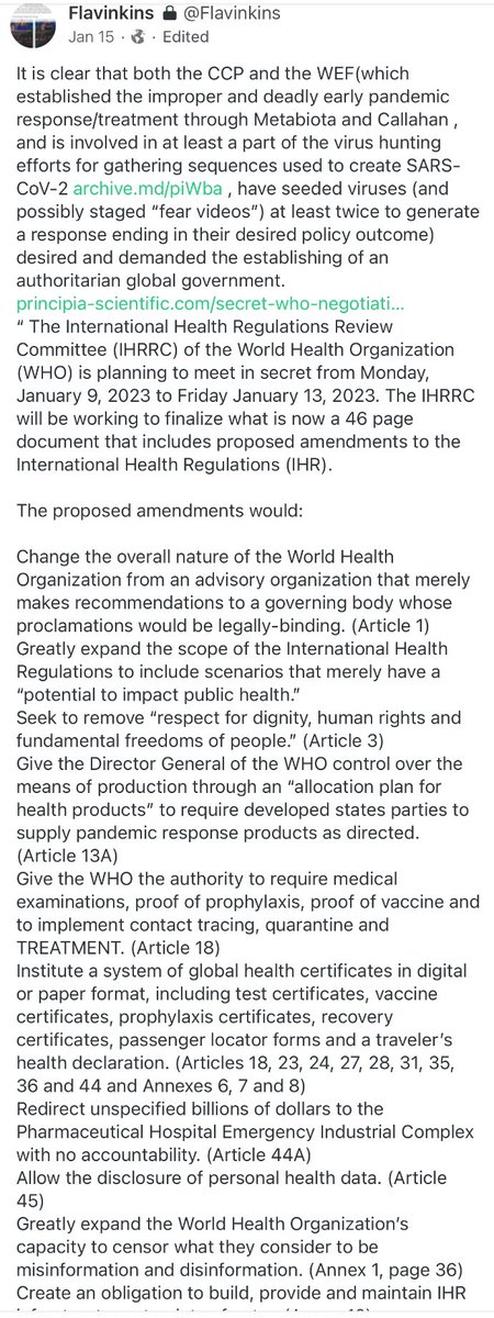 It is clear that both the CCP and the WEF(which established the improper and deadly early pandemic response/treatment through Metabiota and Callahan , and is involved in at least a part of the virus hunting efforts for gathering sequences used to create