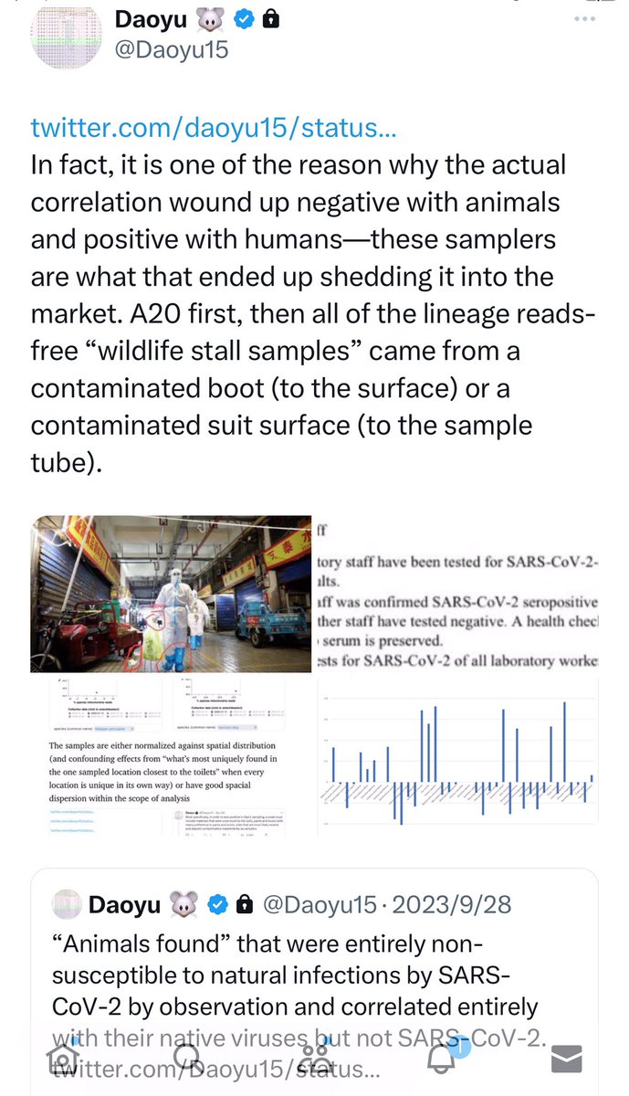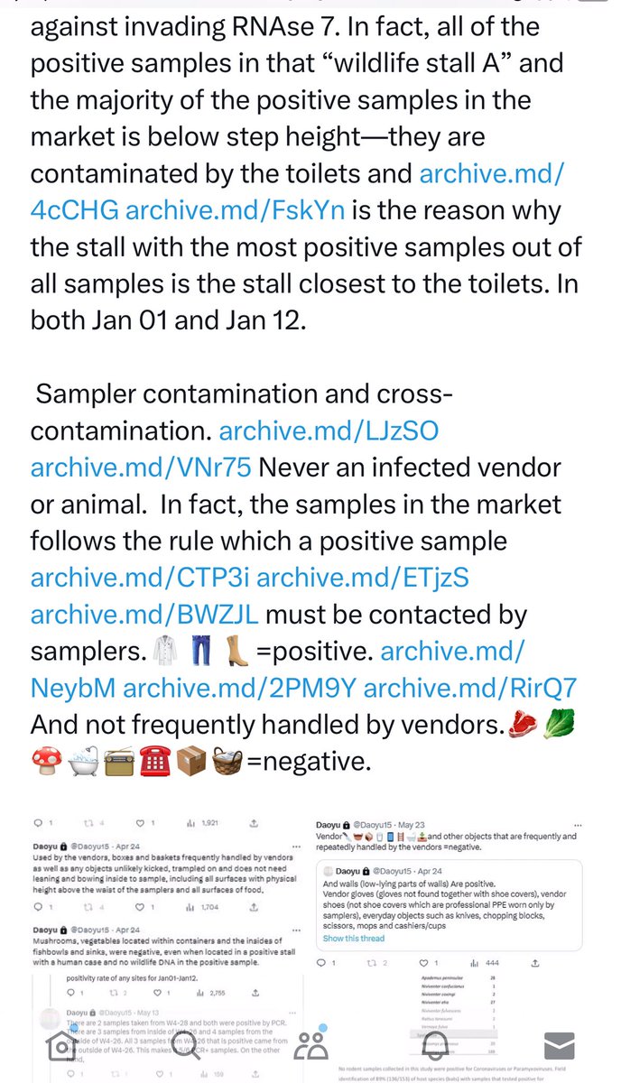 well with time, when all PCR+ samples are in one location closest to the toilets from entirely unrelated cause (sampler boots and suits contamination where closer to the toilets mean more direct entry into the stall after entry into the market, where fresh virus https://t.co/3puTkNipMk