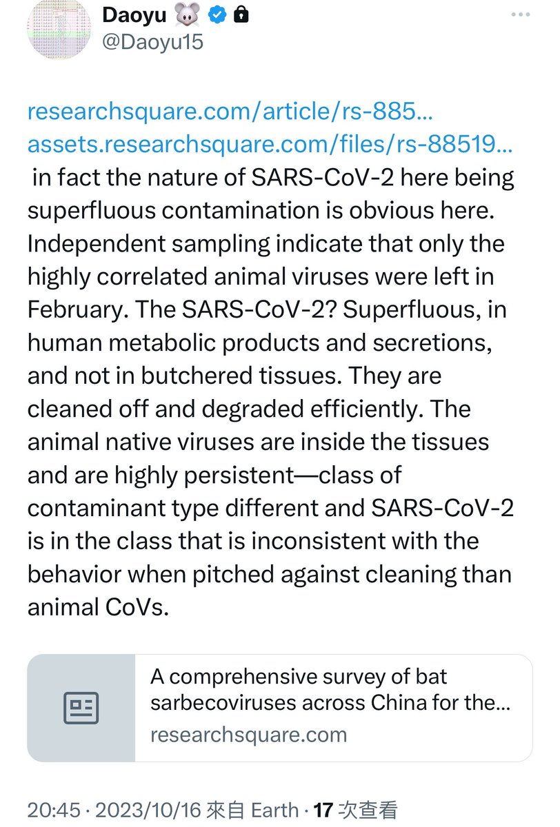 So unfortunate. China have tampered with their data and all their “zoonosis” reports are there to cover up their deployment of the SARS-CoV-2 bioweapon.