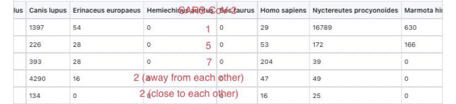 And there are accidentally released non-politically-significant data that exposed the exact opposite of zoonosis happening in China—pre-Huanan SARS-CoV-2 not in animals or