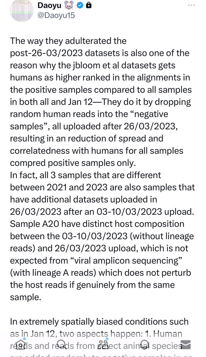 The way they adulterated the post-26-03/2023 datasets is also one of the reason why the jbloom et al datasets gets humans as higher ranked in the alignments in the positive samples compared to all samples in both all and Jan 12—They do it by dropping random human https://t.co/j9L6OaF0CV