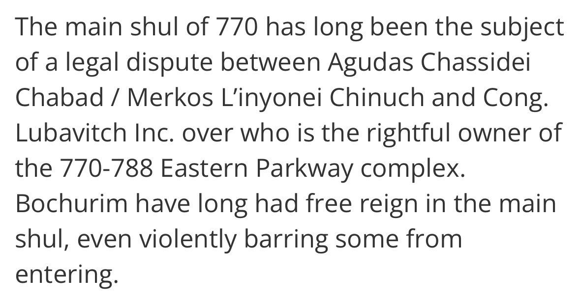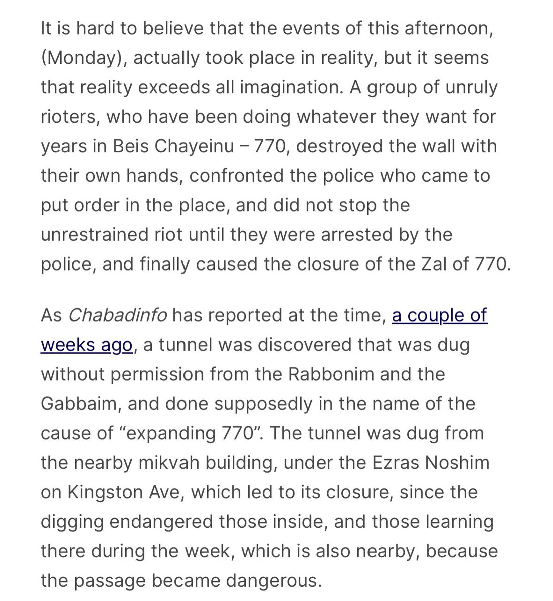 One rabbi explains his disgust- “A horrible thing happened today and unfortunately it's been happening for many, many years. Where a group of people, who were not appointed by anyone-who have taken reign and control of the Holy Shul of 770 and decided to do as they wish”
