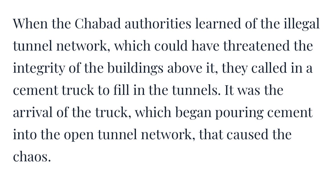 Here’s the street access to the tunnel, the distance from the Chabad house, and video of the access being sealed off.
