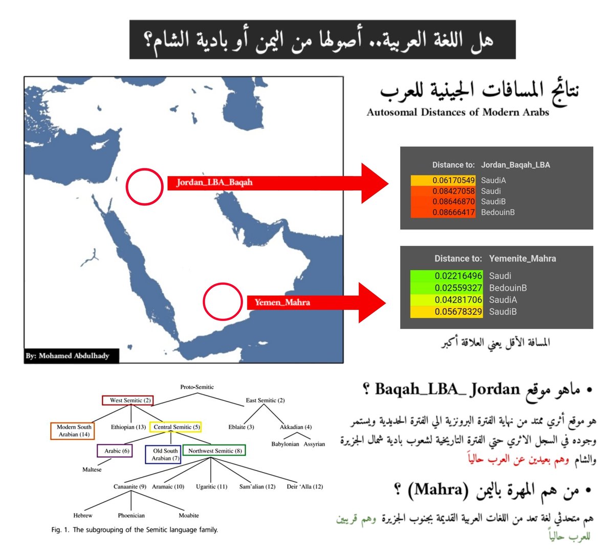 المقال هذا مهم جداً وفيه خلاصة وجهة النظر الجينية بخصوص أصول العرب او أصول اللغة العربية ، رجاءاً الرجوع إليه اذا اثيرت هذه النقطة مرة ثانية