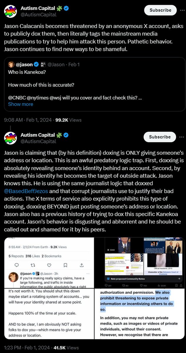 But, @Jason, repeatedly asking your 800,000 followers for the past six months to figure out my identity is asking them to dox me.