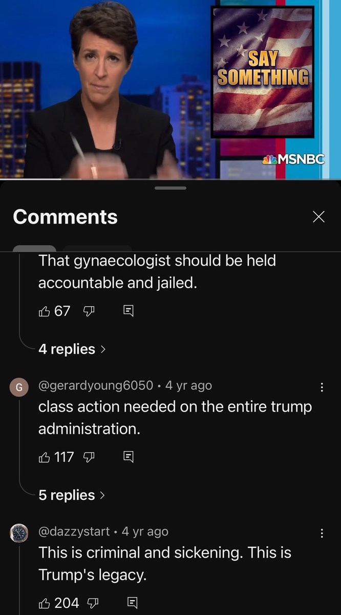 These are some of the comments on the Rachel Maddow hoax clip about the Georgia doctor performing Nazi-style operations to mass sterilize women at an ICE facility during Trump’s first administration. https://t.co/5PzcDfrcnk