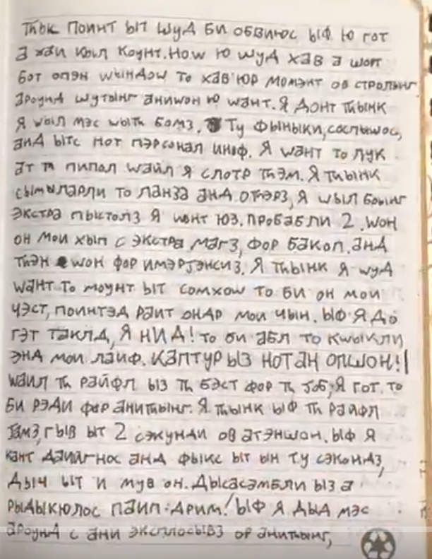 The shooter continues to consider different methods of attack (bombs, etc), and says he was surprised at how affordable different types of weapons were. https://t.co/NMJGiEiaWp