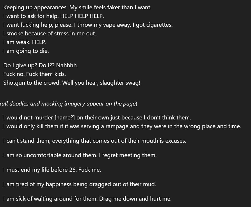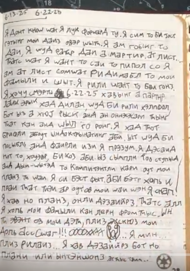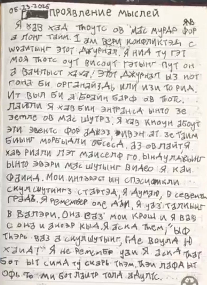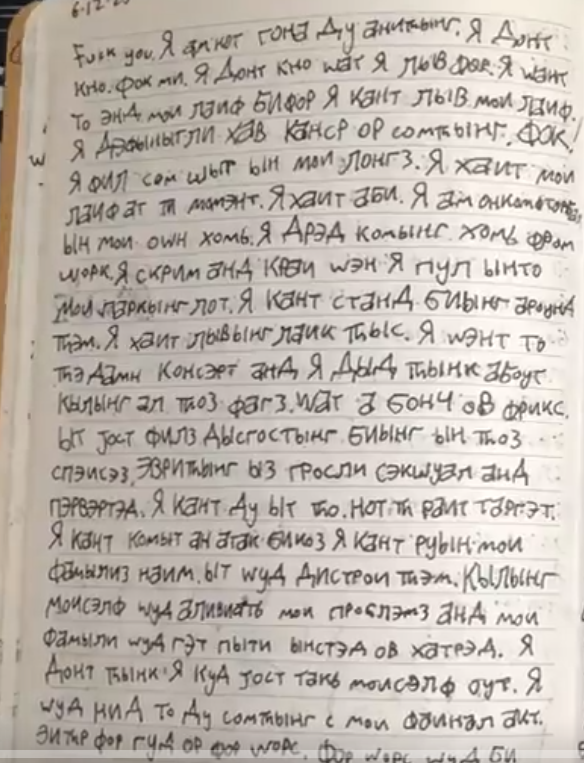 June 12: This is the most rage we have seen in the journal so far. The shooter describes despair, and expresses suicidal thoughts. He describes wanting to commit a shooting, but does not want to bring shame to his family. https://t.co/l6mTL5Ip5f