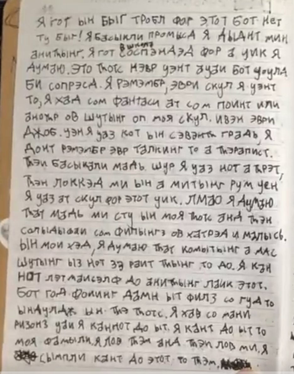 @elonmusk On June 22nd, the shooter made very clear that he had the desire to commit a mass shooting, but had no plan to do it. He wrote in Russian "I want death." He includes a sketch of a terrified person. https://t.co/eQ0LKbHAft
